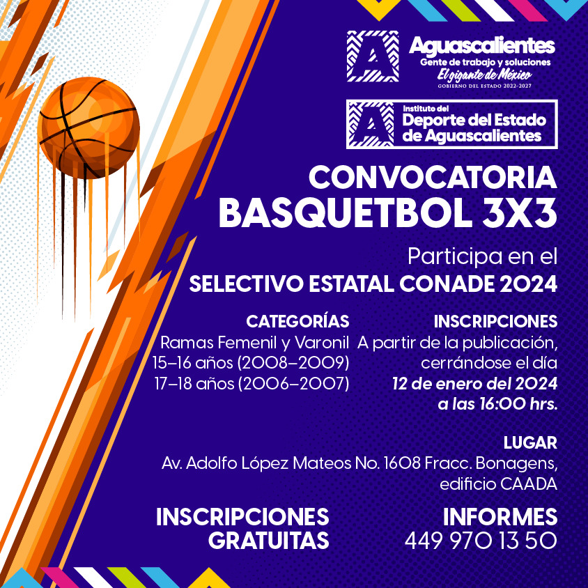 El Instituto del Deporte del Estado de Aguascalientes (IDEA) convoca a los atletas locales a participar en los Preselectivos Estatales para formar los equipos representativos de basquetbol 3×3 con miras a CONADE 2024. Este evento tiene como objetivo identificar y desarrollar el talento emergente en las categorías de 15 y 16 años, así como 17 y 18 años, tanto en rama femenil como varonil.