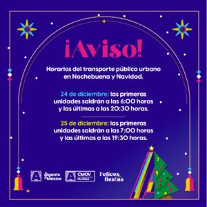La Coordinación General de Movilidad (CMOV) informa que sí habrá servicio de transporte público en Navidad, pero tendrá modificaciones en...