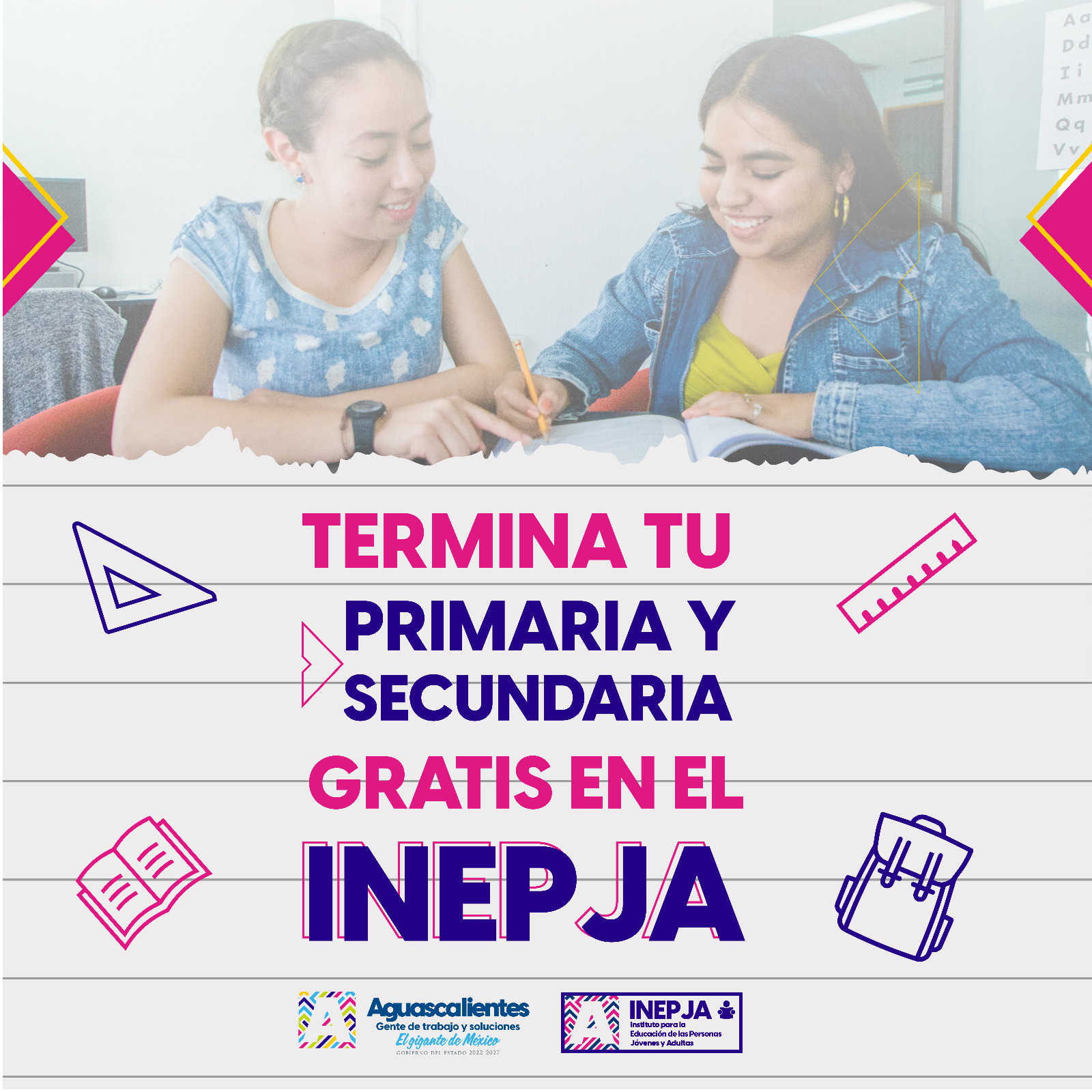 Brindar oportunidades educativas a toda la población es una de las prioridades de la gobernadora Tere Jiménez; con ese objetivo, el Instituto para la Educación de las Personas Jóvenes y Adultas de Aguascalientes (Inepja) invita a todas y todos los mayores de 15 años, que por alguna circunstancia no terminaron la primaria o secundaria, a que concluyan su educación básica.