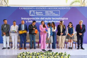 La gobernadora de Aguascalientes, Tere Jiménez, inauguró un aula tecnológica y un laboratorio de enfermería en el Cecytea de Pabellón...