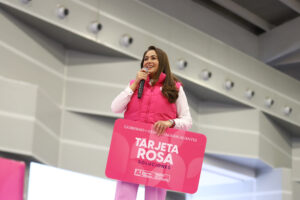 Ante más de 5 mil asistentes, la gobernadora de Aguascalientes, Tere Jiménez, entregó 2,600 Tarjetas Rosas a igual número de...