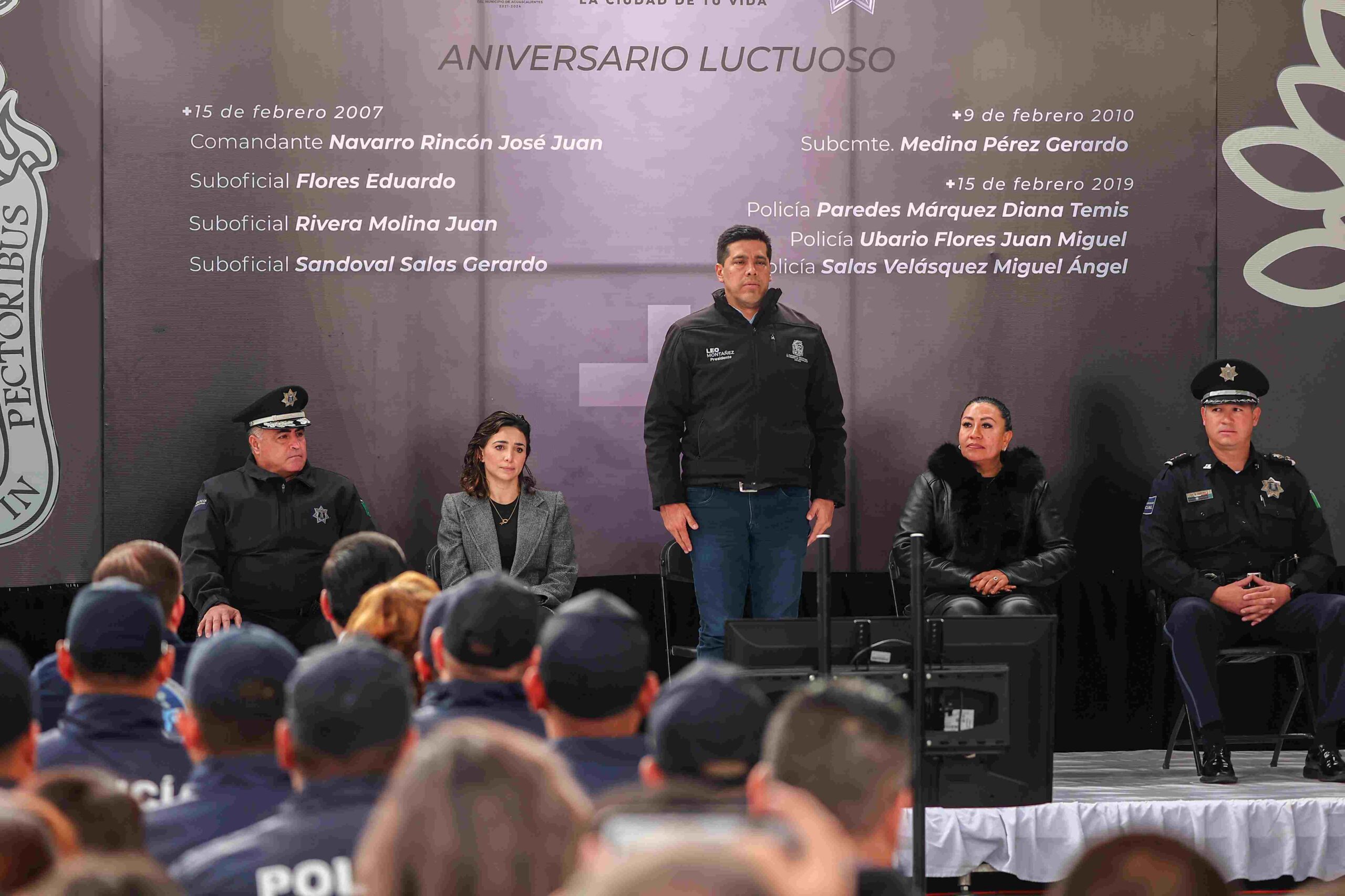 En la Secretaría de Seguridad Pública Municipal de Aguascalientes se rindió un sentido homenaje en memoria de los policías que perdieron la vida en cumplimiento de su deber, así como de aquellos que se conmemora su aniversario luctuoso en febrero.