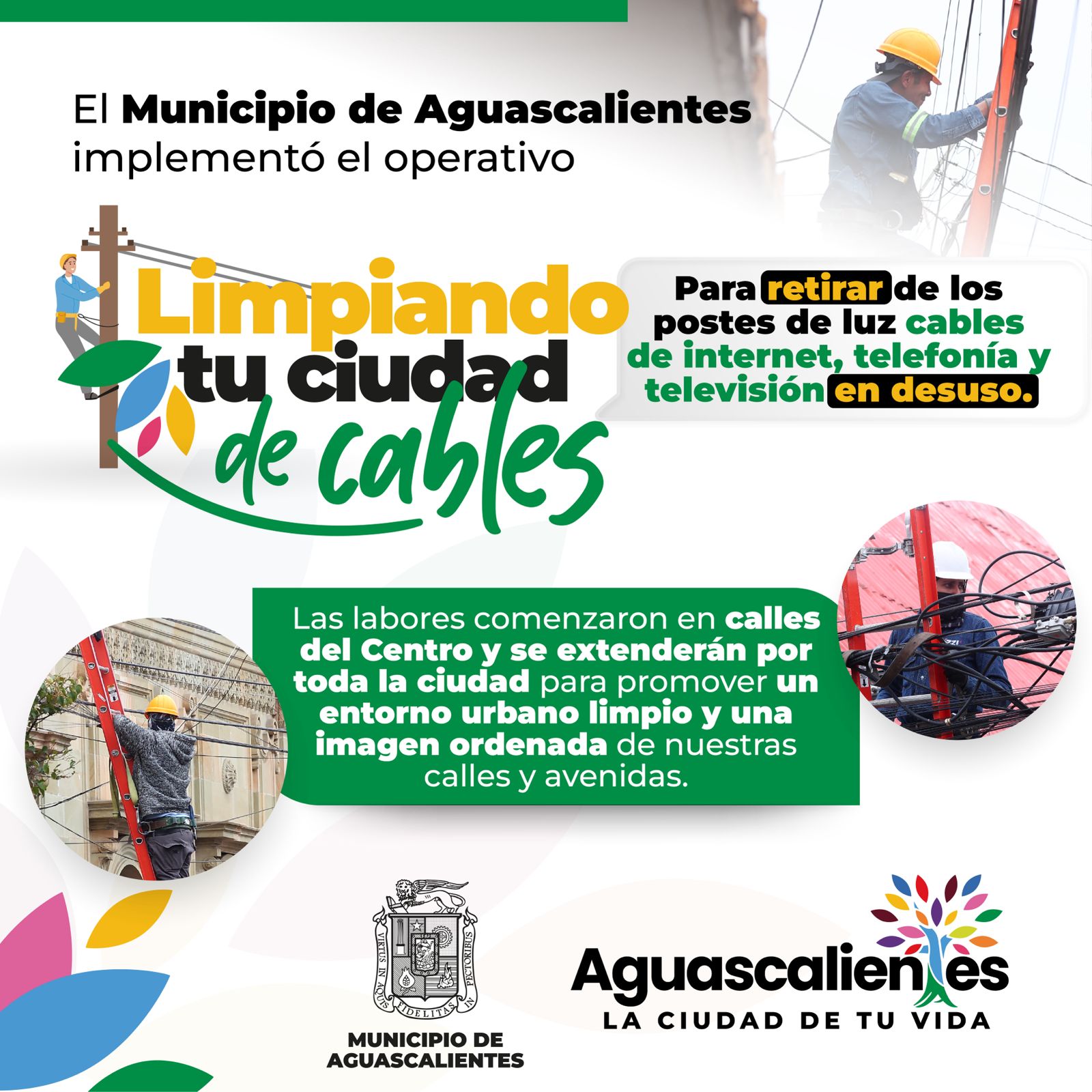 El Municipio de Aguascalientes inició el operativo “Limpiando tu Ciudad de Cables”, con la intención de fortalecer la imagen limpia y ordenada de la ciudad, a través del retiro de cables en desuso de servicios de televisión, internet o telefonía.
