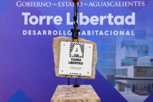 La gobernadora de Aguascalientes, Tere Jiménez, colocó la primera piedra de la Torre Libertad, que será un desarrollo habitacional que...