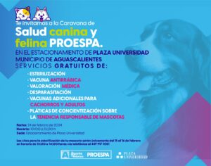 La Procuraduría Estatal de Protección al Ambiente (Proespa) invita a la ciudadanía a que acuda con sus mascotas a la...
