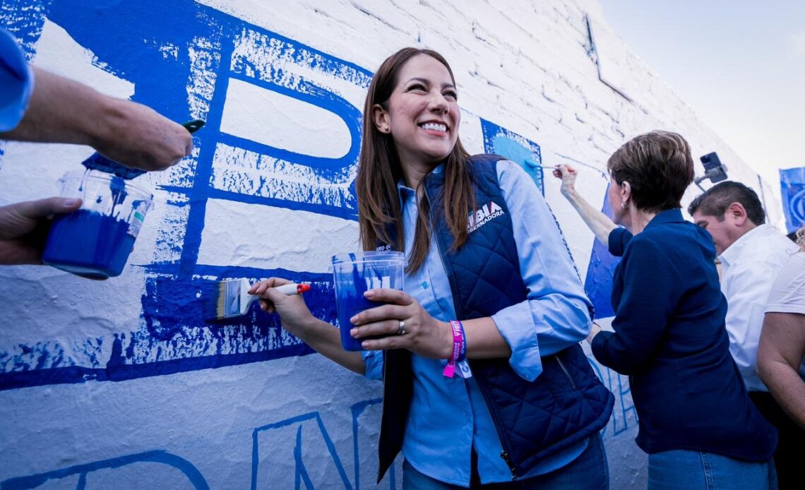 La primera barda que Libia Dennise García Muñoz Ledo pintó como candidata a la gubernatura, fue en la colonia donde nació, en Echeveste, en el municipio de León, Guanajuato. La candidata de la coalición “Fuerza y Corazón por Guanajuato”, en su segundo día de campaña regresó al lugar que la vio crecer para visitar y escuchar a los habitantes; además de recorrer una vez más, las calles que la acompañaron cuando su lucha por apoyar el desarrollo de su colonia, apenas empezaba.