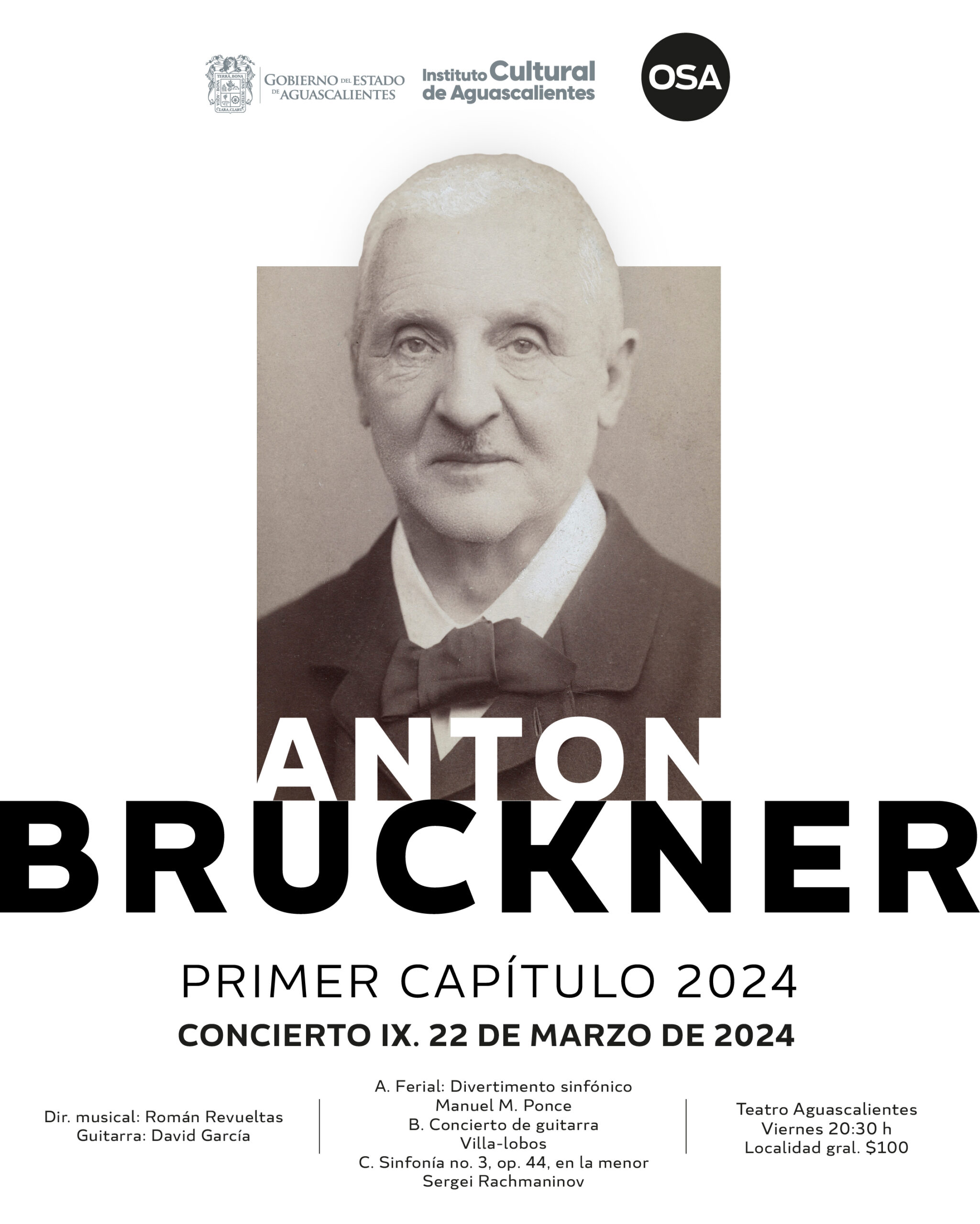 Asiste este viernes 22 de marzo al concierto de la Orquesta Sinfónica de Aguascalientes que se llevará a cabo a las 20:30 horas en el Teatro Aguascalientes, bajo la dirección de Román Revueltas Retes y con la participación de David García como invitado en la guitarra.