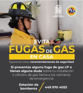 La Coordinación Municipal de Protección Civil a través del Departamento de Bomberos exhorta a la ciudadanía a tomar las medidas correspondientes para evitar fugas de gas, que pudieran representar riesgo.