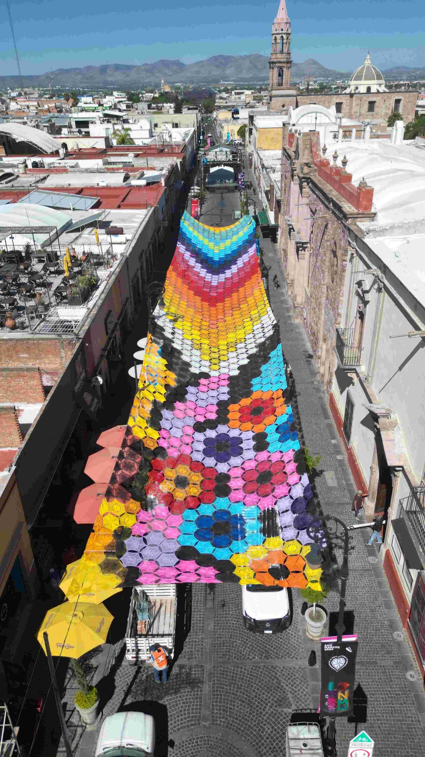 Se viste al Corredor Cultural Carranza 2024 con el cielo tejido de la Asociación de Tejedoras de Etzatlán.