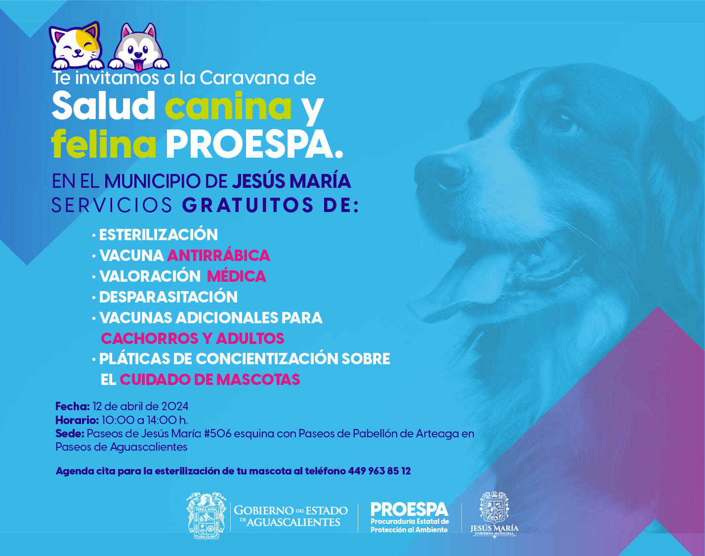 En el municipio de Aguascalientes, la Caravana de la Salud Canina y Felina será en Prolongación Paseo de la Asunción, esquina con la calle Jesús Consuelo Inclán, en el fraccionamiento Boulevares.