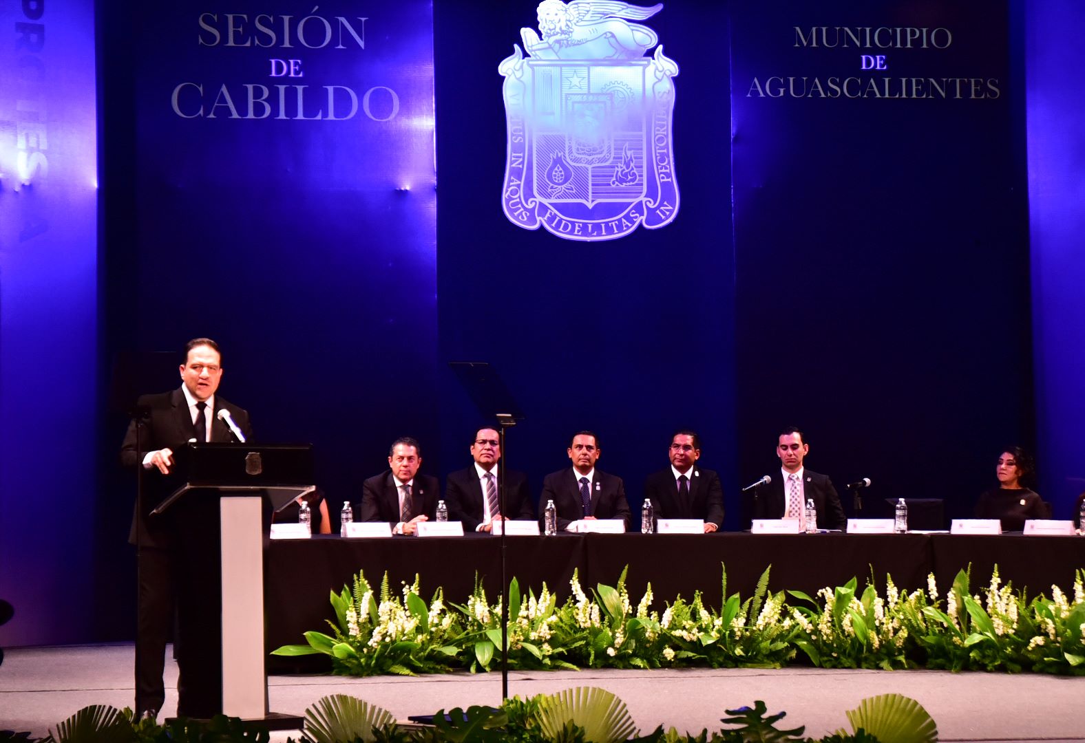 En Sesión Extraordinaria de Cabildo celebrada en el histórico teatro Morelos, José Juan Sánchez, reiteró a la gobernadora del Estado, Tere Jiménez, así como al magistrado presidente del Supremo Tribunal de Justicia en el Estado, Juan Rojas García, así como a la diputada Gladys Adriana Ramírez Aguilar, presidenta de la Mesa Directiva de la LXV Legislatura del Congreso del Estado, la apertura para trabajar de la mano por el bien común y con resultados contundentes que impacten positivamente a la gran ciudad que es Aguascalientes.