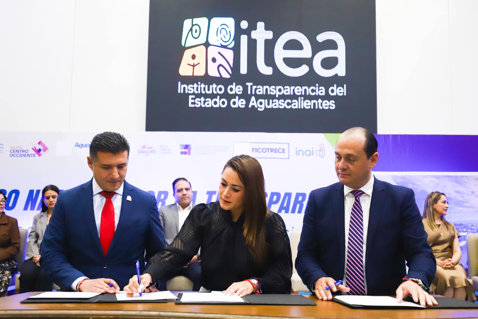En el evento también estuvieron presentes Mariela del Carmen Huerta Guerrero, coordinadora de la Región Centro-Occidente del Sistema Nacional de Transparencia; Norma Julieta del Río Venegas, comisionada nacional del INAI y coordinadora de la Comisión Permanente de Vinculación con el Sistema Nacional de Transparencia; José Juan Sánchez Barba, presidente municipal de Aguascalientes; la diputada Gladys Adriana Rodríguez Aguilar, presidenta de la Mesa Directiva del H. Congreso del Estado; Josefina Román Vergara, comisionada del INAI; Mónica Janeth Jiménez Rodríguez, comisionada del ITEA; José Antonio Garza Tristán, comisionado del ITEA, y Roberto Moreno Herrera, secretario técnico del Sistema Nacional Anticorrupción.