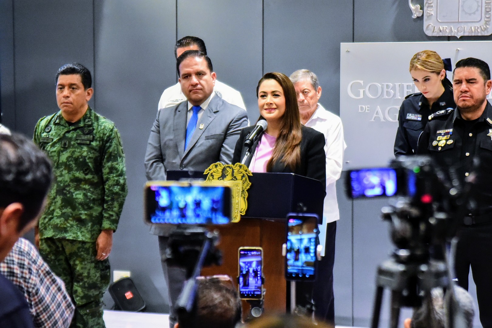En la rueda de prensa también estuvieron presentes José Juan Sánchez Barba, presidente municipal de Aguascalientes; Juan Roberto Sánchez Fragoso, comandante de la 14/a. Zona Militar; Leonel Alcaraz Alarcón, coordinador general de la Guardia Nacional en Aguascalientes; Manuel Alonso García, secretario de Seguridad Pública del Estado; Jesús Figueroa Ortega, fiscal general del Estado; Rubén Galaviz Tristán, secretario de Salud del Estado; Antonio Martínez Romo, secretario de seguridad pública del municipio de Aguascalientes;  Jaime del Conde Ugarte, delegado de la Cruz Roja en Aguascalientes; Michelle Olmos Álvarez, directora del C5i; Jesús Eduardo Muñoz de León, de la Coordinación Estatal de Protección Civil y José Gabino Vázquez Vega, titular de la Coordinación de Protección Civil del Municipio de Aguascalientes.