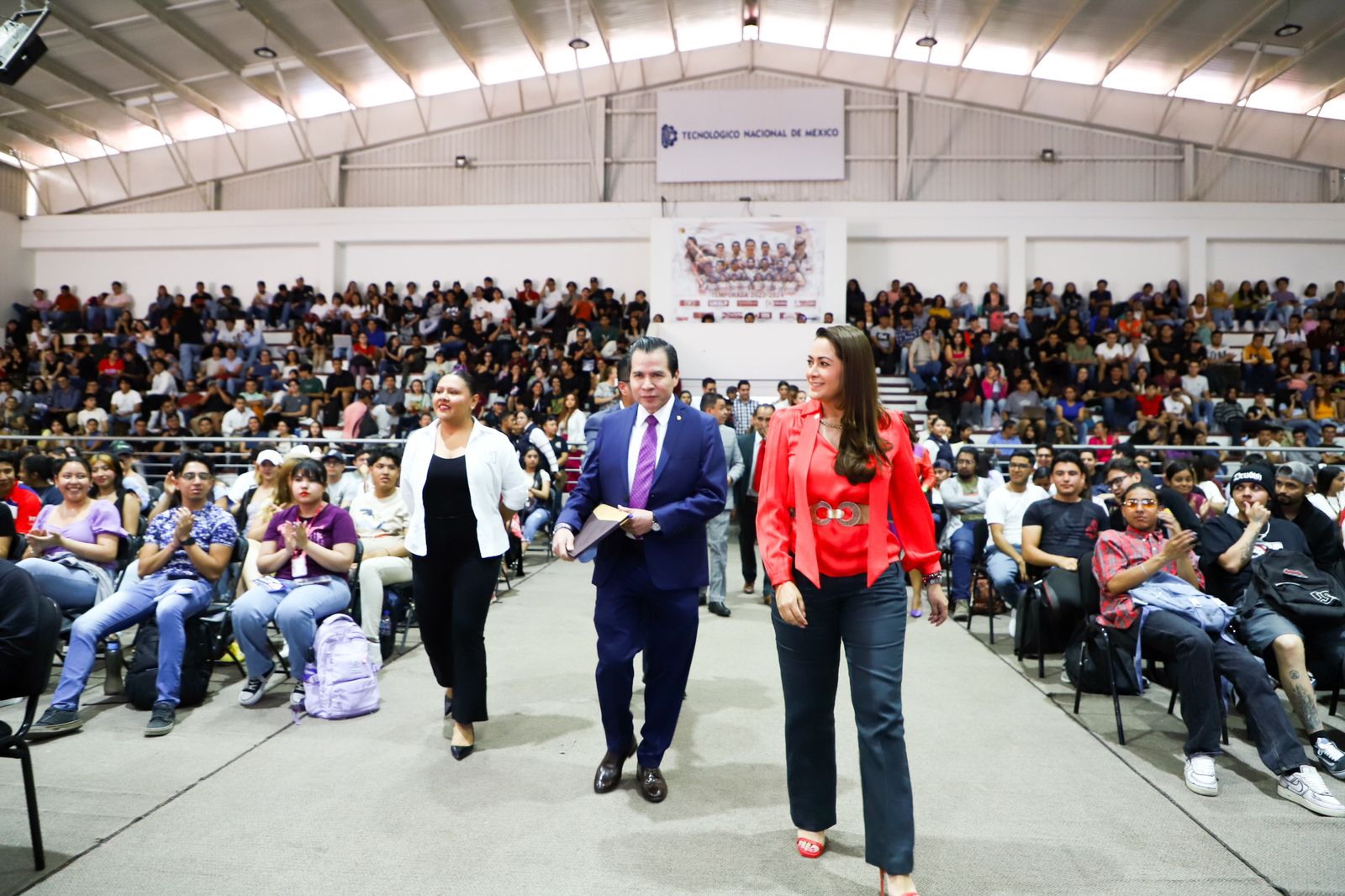 Durante el encuentro, Tere Jiménez invitó a las y los alumnos a seguir preparándose para ser los mejores profesionistas y aprovechar cada oportunidad que se les presente mientras estudian, pues esta etapa será la que les dará los cimientos para construir su futuro.