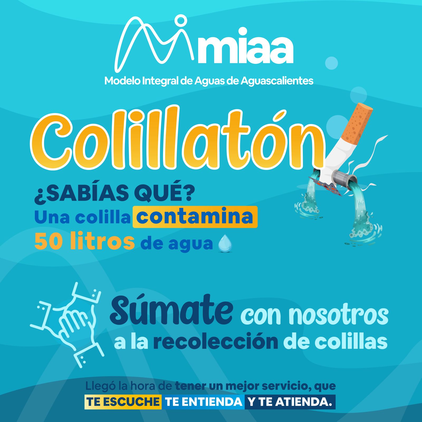 Con el objetivo de preservar la calidad del agua que se suministra a las familias de Aguascalientes, el Modelo Integral de Aguas de Aguascalientes (MIAA) lanza la campaña denominada “Colillatón”, a través de la cual se pretende recolectar la mayor cantidad posible de colillas de cigarro, para reducir la contaminación ambiental.