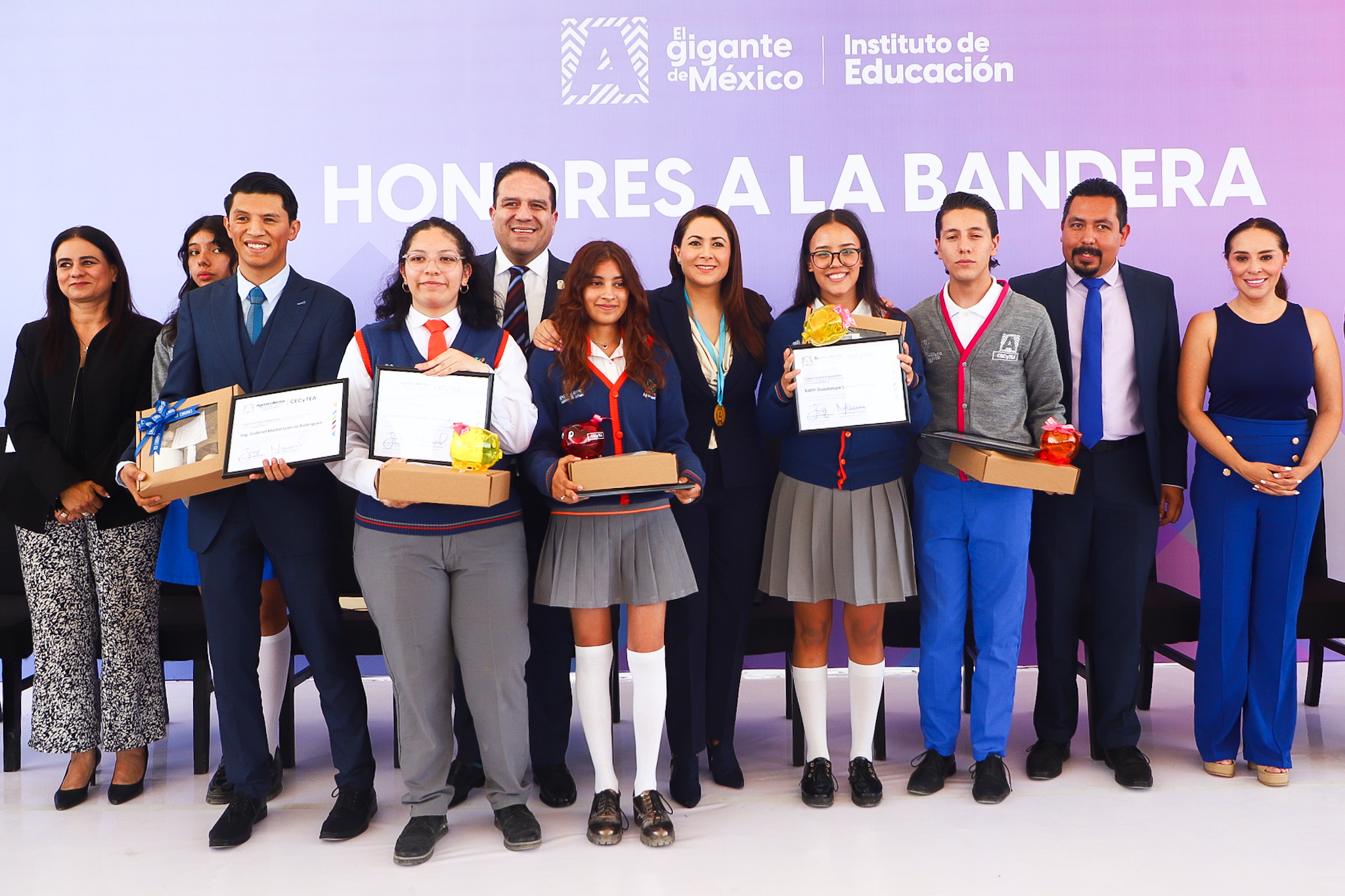 En el marco de los Honores a la Bandera, la gobernadora también entregó reconocimientos a las y los alumnos que destacaron en el Festival de Arte y Cultura y del Concurso de Creatividad e Innovación Tecnológica.