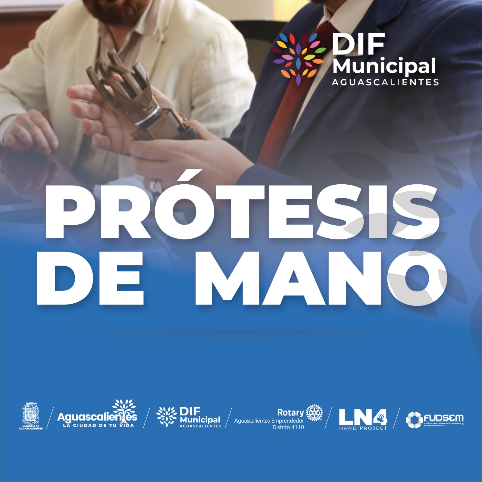 El DIF Municipal en conjunto con ROTARY Aguascalientes Emprendedor Distrito 4110, realizarán una donación de prótesis de mano a personas del Municipio de Aguascalientes que lo necesiten, así lo informó Zayra Angélica Rosales Tirado, directora general de esta institución.