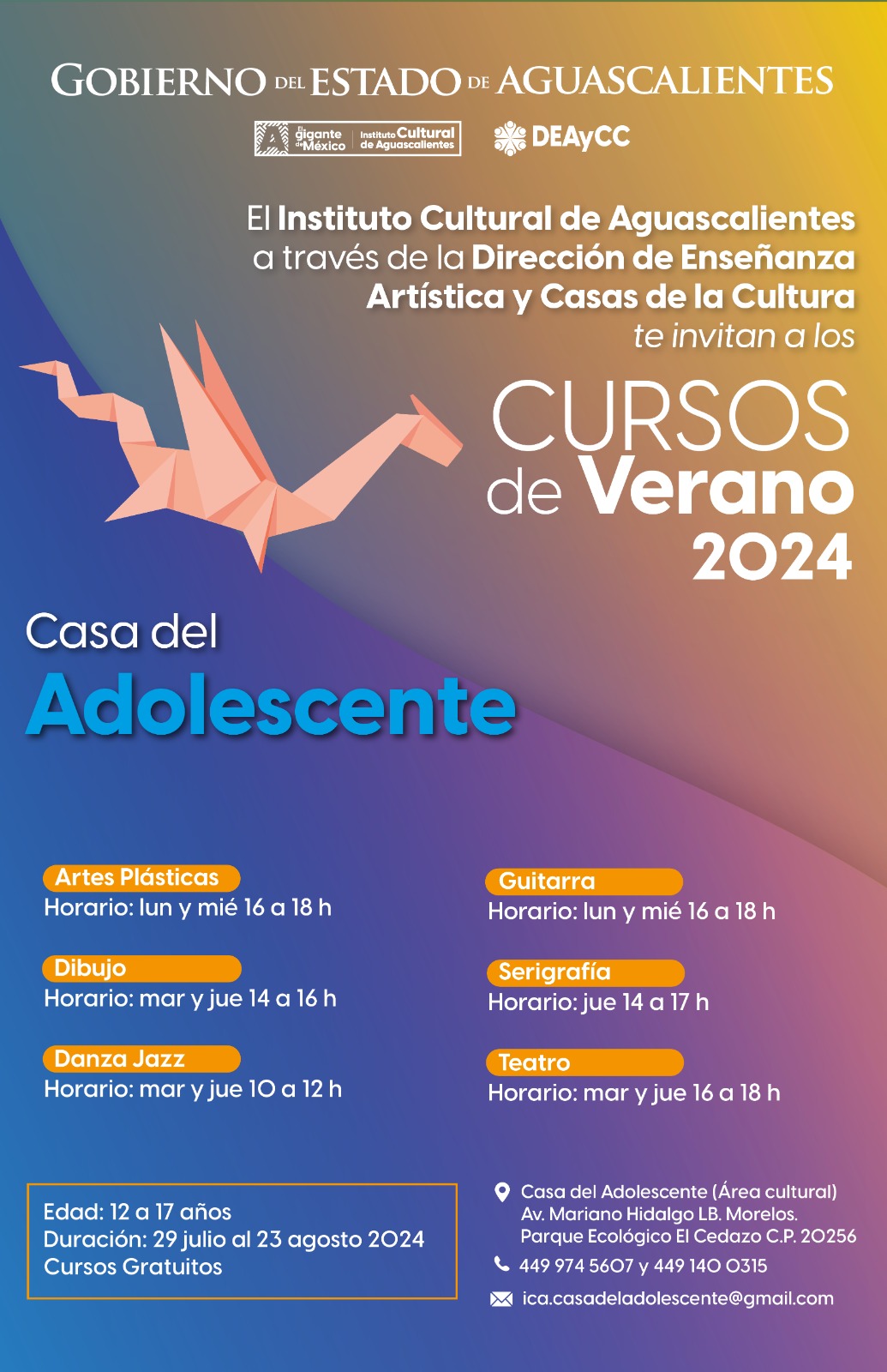 ¿Quieres aprender algo nuevo estas vacaciones? El Gobierno del Estado, a través del Instituto Cultural de Aguascalientes (ICA), te invita a los cursos de verano que se ofrecerán en diferentes centros culturales y en las Casas de la Cultura de los municipios de la entidad.
