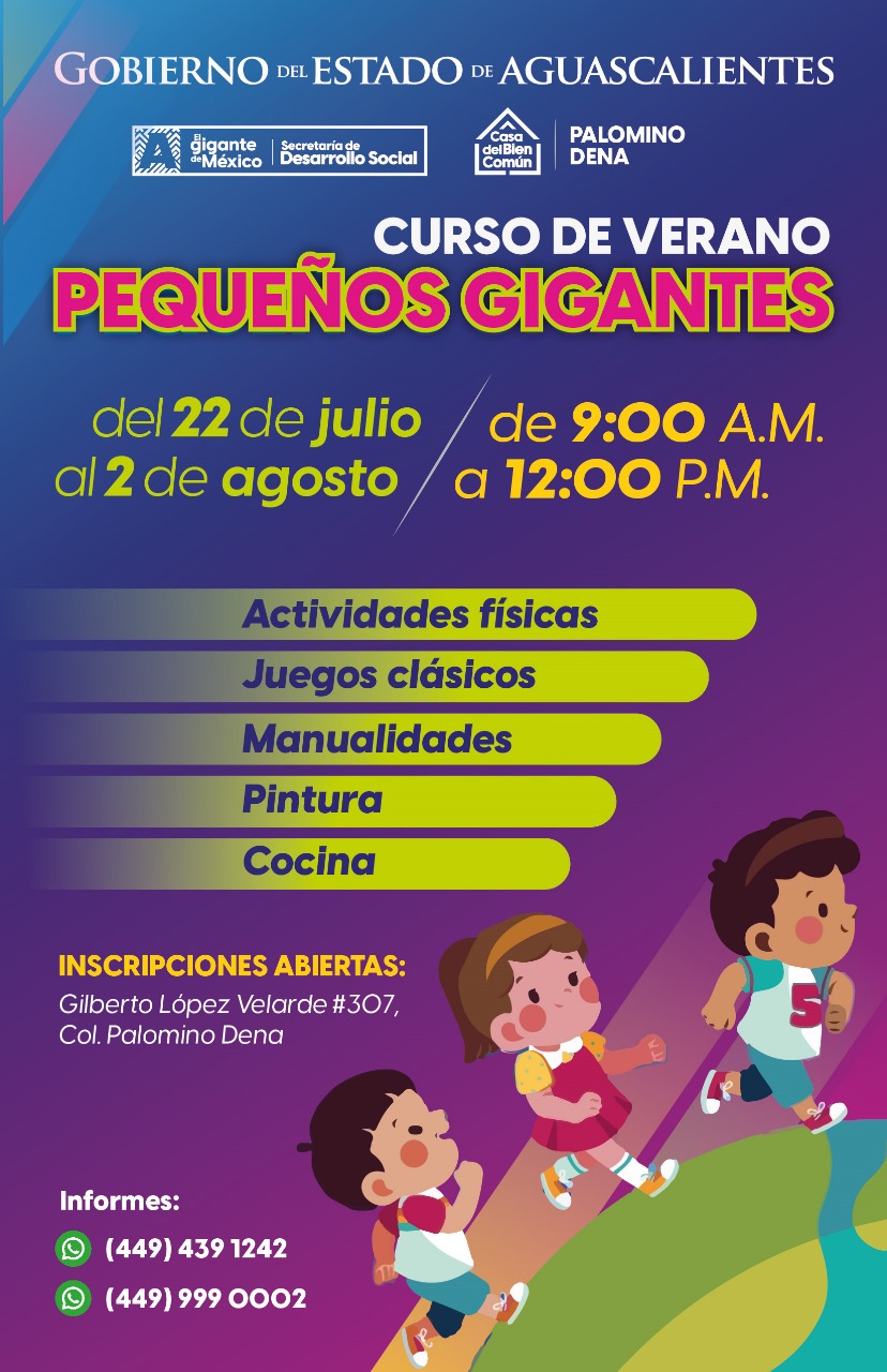 El Gobierno del Estado, a través de la Secretaría de Desarrollo Social, puso en marcha los Cursos de Verano “Pequeños Gigantes” en las Casas del Bien Común, con el propósito de ofrecer a niñas y niños un espacio de diversión y aprendizaje durante su periodo vacacional.