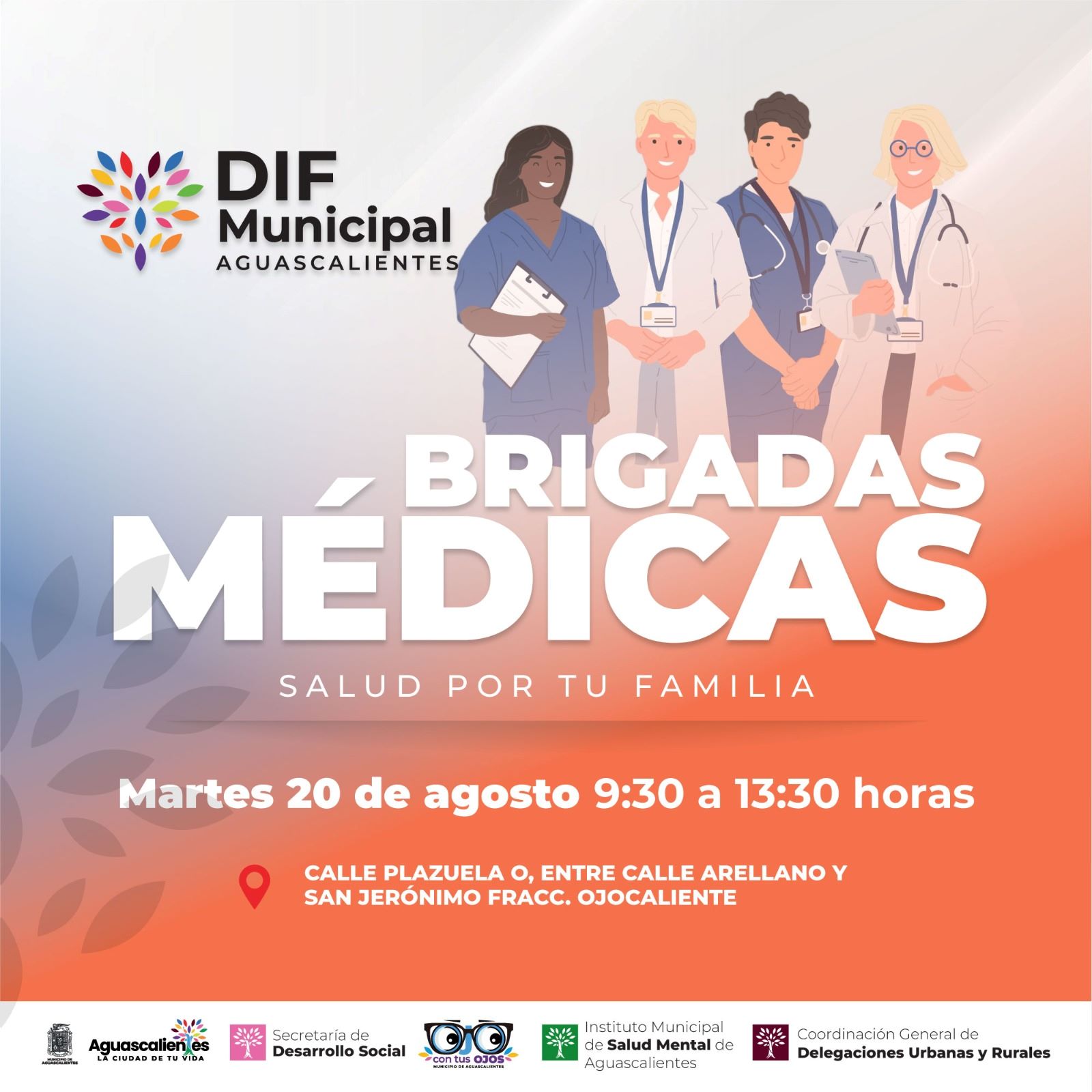 En apoyo a la salud de la población más vulnerable el Sistema para el Desarrollo Integral de la Familia (DIF) Municipal, realizará la Brigada Médica “Salud por tu Familia” en el fraccionamiento Ojocaliente, así lo informó Zayra Rosales Tirado, directora general de esta institución.