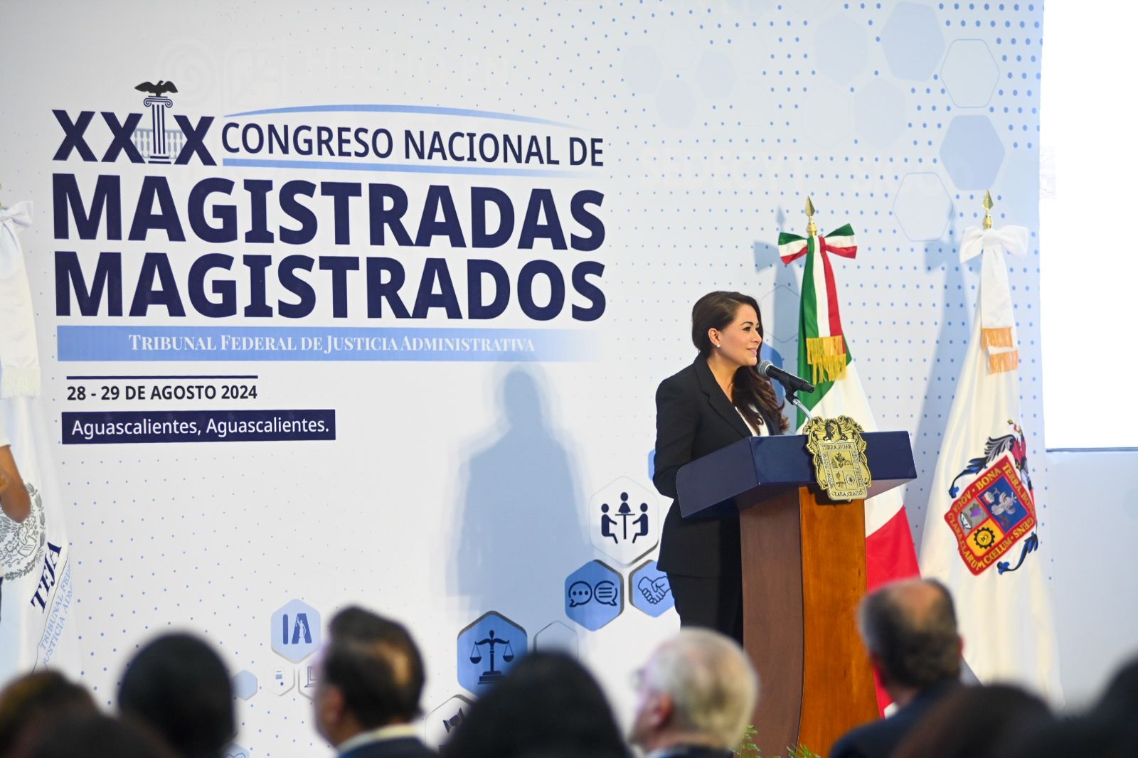 Al clausurar el XXIX Congreso Nacional de Magistrados y Magistradas del Tribunal Federal de Justicia Administrativa (TFJA) que se llevó a cabo en esta entidad, la gobernadora Tere Jiménez aseguró que Aguascalientes es un estado comprometido con la democracia, la paz, la seguridad y la unidad del país.
