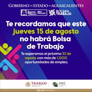 El Gobierno del Estado, a través del Servicio Estatal y Nacional de Empleo (SNEA), informa que con motivo de los...