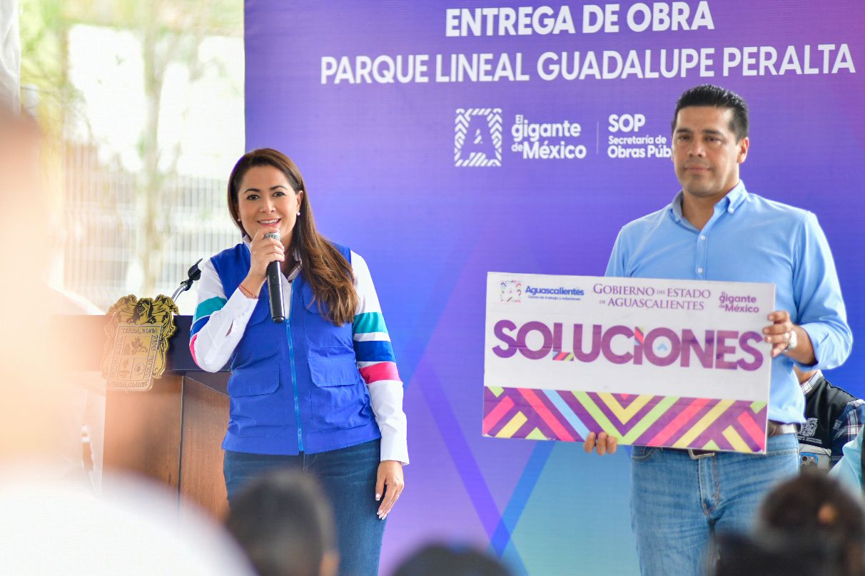 Con una inversión superior a los 30 millones de pesos, la gobernadora de Aguascalientes, Tere Jiménez, inauguró el parque lineal “Guadalupe Peralta”, al oriente de la ciudad, en beneficio de más de 400 mil personas.