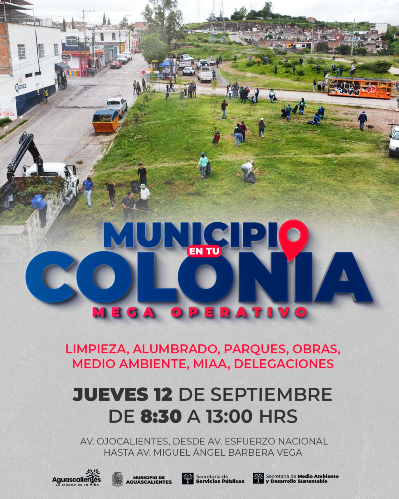El secretario de Servicios Públicos, Carlos España Martínez, comentó que este jueves 12 de septiembre se llevará a cabo la próxima brigada a partir de las 8:30 de la mañana en predios ubicados sobre avenida Ojocaliente, desde avenida Esfuerzo Nacional hasta la avenida Miguel Ángel Barberena Vega, al oriente de la ciudad.