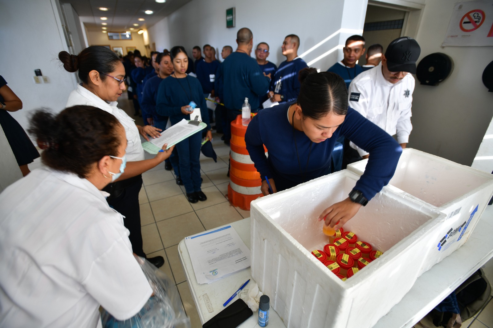 La prueba fue realizada por un laboratorio particular, cuyo personal acudió al Complejo de Seguridad Pública Municipal de Aguascalientes a tomar muestras a las y los cadetes en formación.