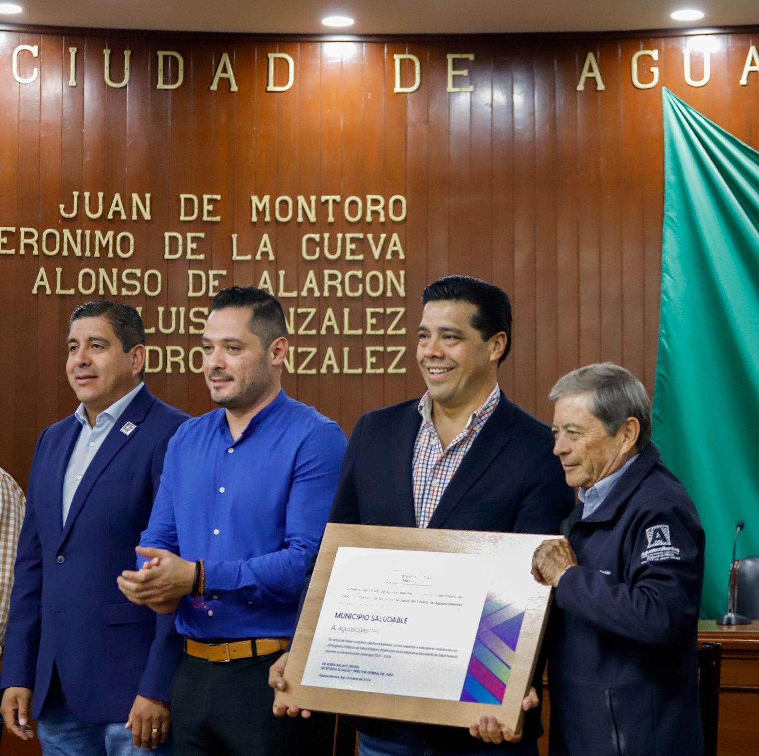El Instituto de Servicios de Salud del Estado de Aguascalientes (ISSEA) entregó placas de reconocimiento como Municipio Saludable a los 11 ayuntamientos de la entidad por haber acreditado al cien por ciento el Programa Municipal de Salud Pública 2021-2024, pues su esfuerzo ha beneficiado a 103 mil 270 personas de los 11 municipios.
