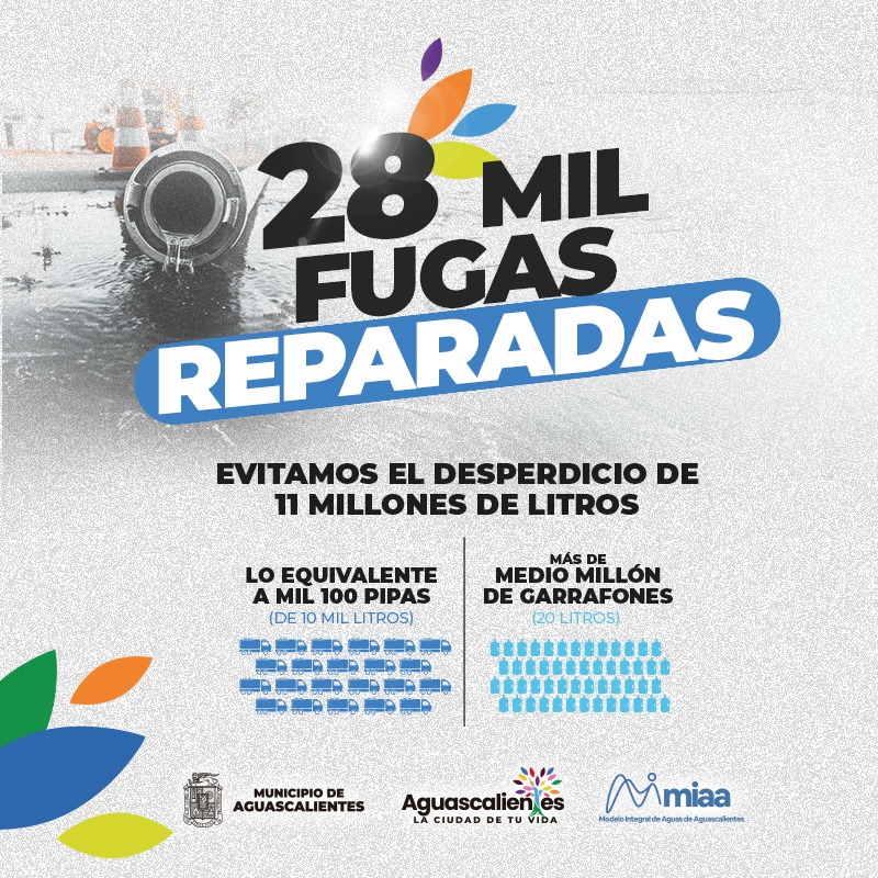 A casi un año de operación, el Modelo Integral de Aguas de Aguascalientes (MIAA) ha atendido 28 mil fugas de agua potable, con lo que se ha evitado el desperdicio de más de 11 millones de litros del vital líquido.