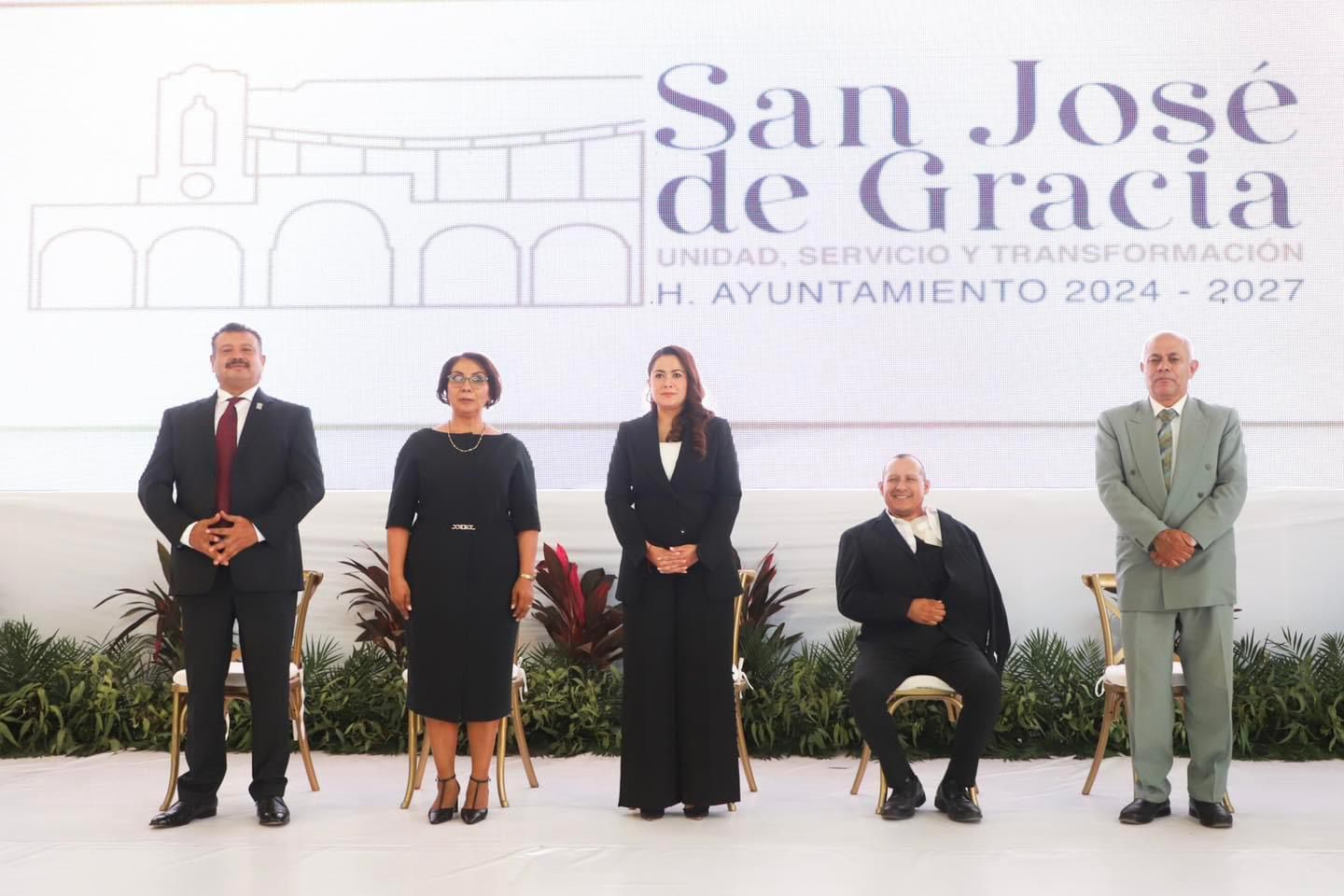 En eventos diferentes en cada uno de los municipios, la gobernadora acompañó en su toma de protesta a Laura Araceli González Reyes, como nueva presidenta de San José de Gracia; y a Lucero Espinoza Vázquez, como alcaldesa de Pabellón de Arteaga, para el periodo 2024-2027.