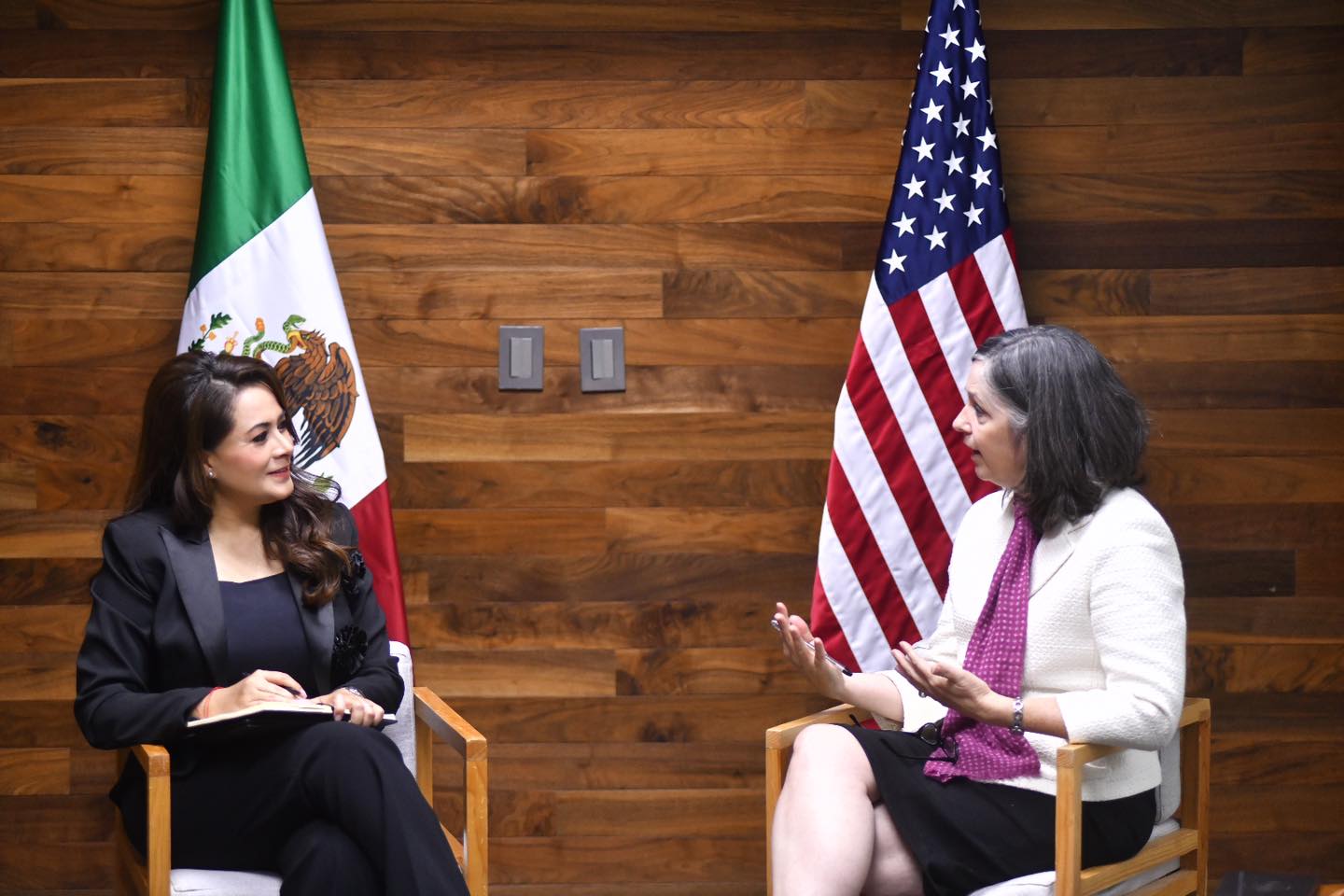 La gobernadora de Aguascalientes, Tere Jiménez, sostuvo una reunión con Amy Scanlon, cónsul general de Estados Unidos en Guadalajara, durante la cual se abordaron temas como desarrollo económico, seguridad, educación y energías limpias.