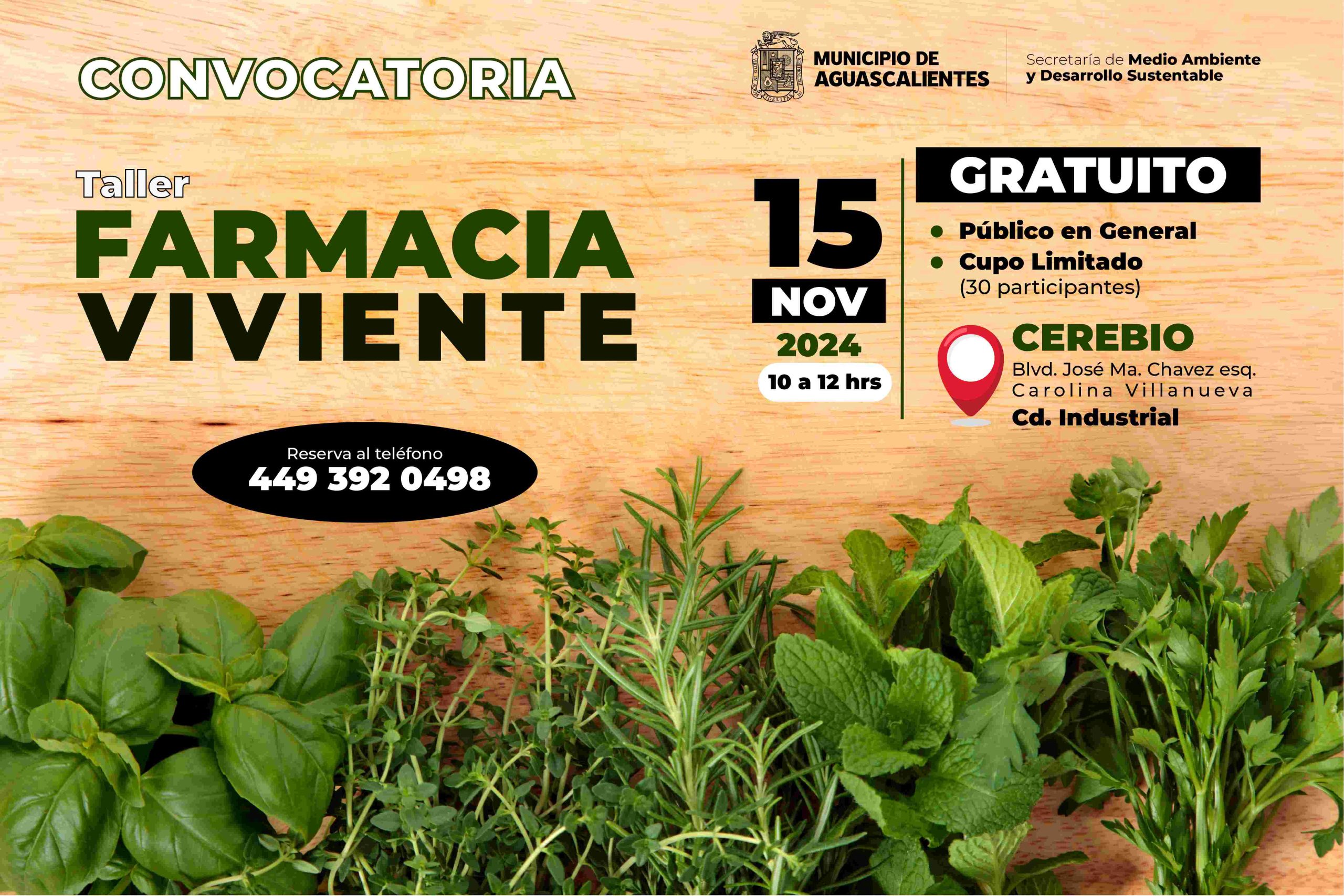La Secretaría de Medio Ambiente y Desarrollo Sustentable del Municipio de Aguascalientes (Semadesu), invita a participar en el curso gratuito de Farmacia Viviente. La invitación es para el público en general donde aprenderán, a través de diferentes actividades, a elaborar productos naturales como repelente de mosquitos con citronela, remedios para dolores, así como otros productos hechos a base de plantas medicinales.