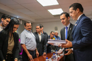 La mañana de este viernes, el presidente municipal, Leo Montañez acudió al Congreso del Estado para entregar a los integrantes de la...