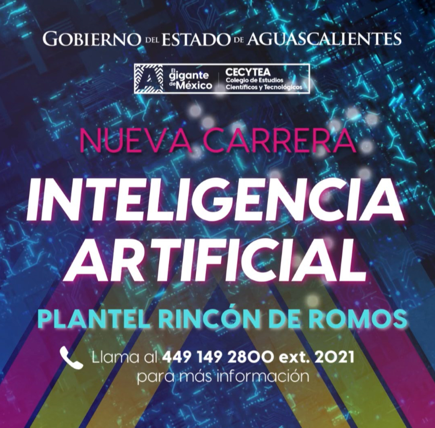 A partir del ciclo escolar 2025-2026, el Colegio de Estudios Científicos y Tecnológicos del Estado de Aguascalientes (CECyTEA) abrirá la carrera técnica en Inteligencia Artificial en su plantel de Rincón de Romos, en respuesta a las demandas actuales del mercado laboral y a la creciente importancia de la tecnología en los sectores industrial y de servicios.