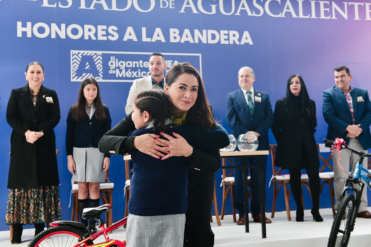 En el evento también estuvieron presentes Lucía de León Ursúa, presidenta de la Mesa Directiva del H. Congreso del Estado; Adán Valdivia López, diputado local; Manuel Alonso García, secretario de Seguridad Pública del Estado; Luis Enrique Gutiérrez Reynoso, director general del Instituto de Educación de Aguascalientes; J. Jesús Lara Ramírez, director general del Instituto de Infraestructura Física Educativa del Estado; Patricia Venegas Ruvalcaba, titular de la Sisae Calvillo; Nancy Judith López de Luna, directora de la primaria, y Vicente Pérez Almanza, titular de Guardianes del Agua.