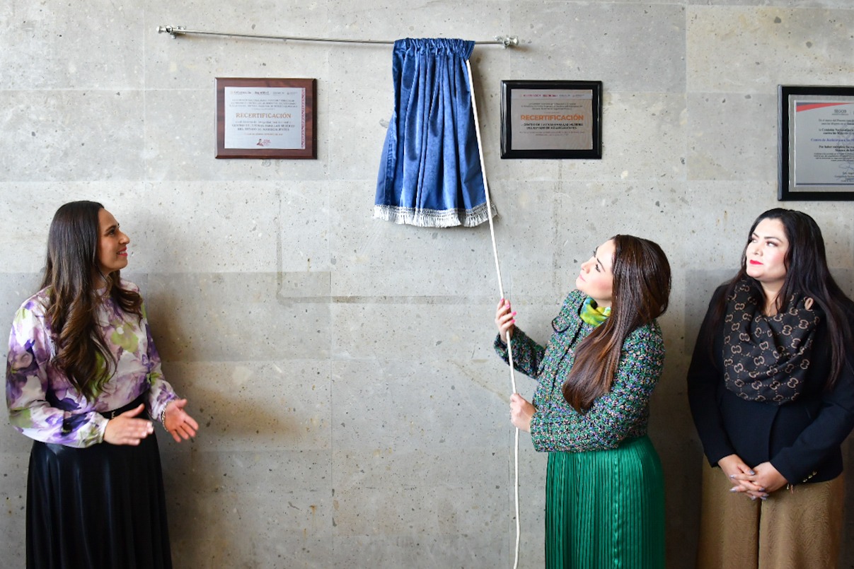 La gobernadora de Aguascalientes, Tere Jiménez, encabezó la develación de la Placa de Recertificación del Centro de Justicia para Mujeres (CJM), con lo que se garantiza una atención integral, de calidad y con protocolos actualizados para las mujeres, niñas y adolescentes que atraviesan por situaciones de riesgo.
