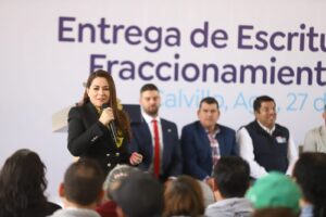 La gobernadora de Aguascalientes, Tere Jiménez, entregó escrituras a 250 familias que habitan en la colonia Benito Juárez, en el...