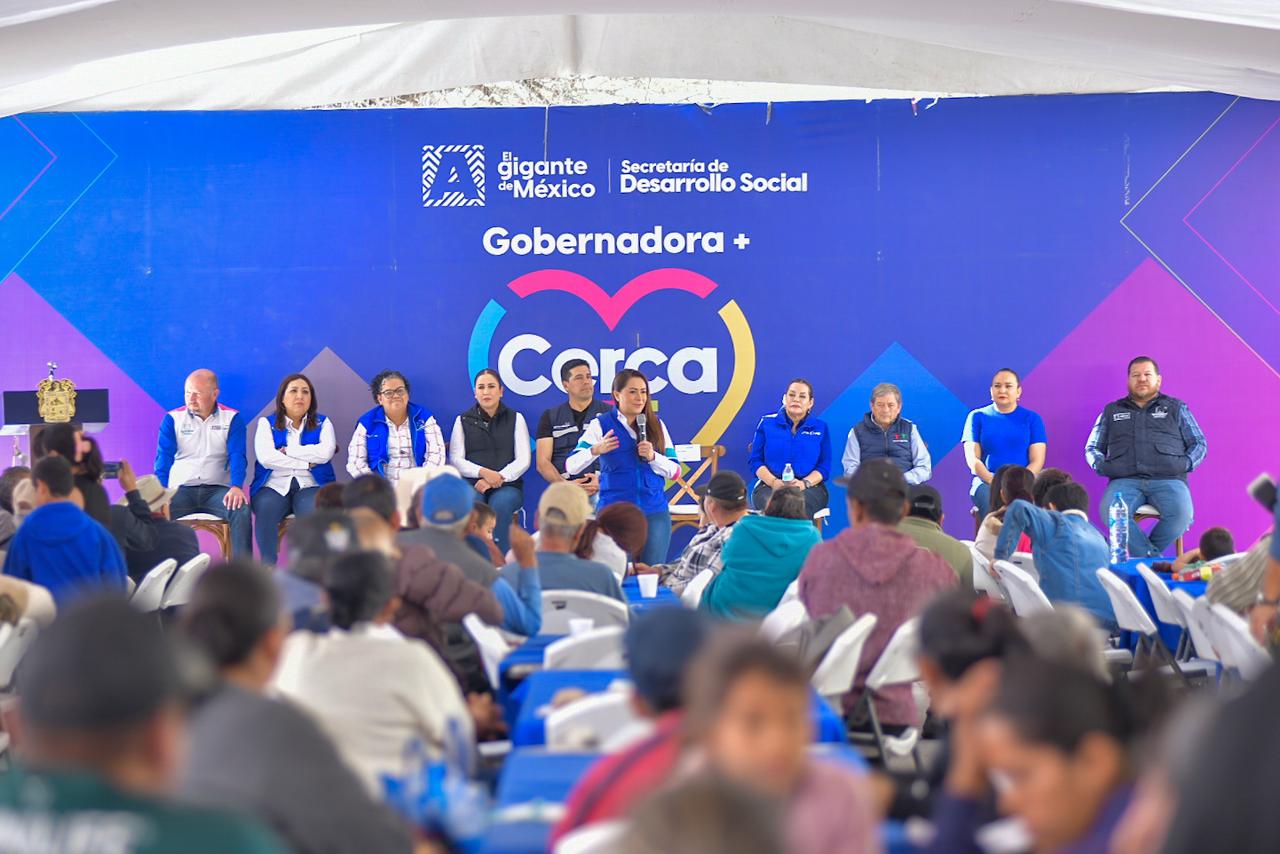 La gobernadora Tere Jiménez acercó apoyos y servicios de las diferentes dependencias estatales a las familias de la comunidad de Jaltomate, en el municipio de Aguascalientes, a través del programa “Gobernadora cerca de Ti”.