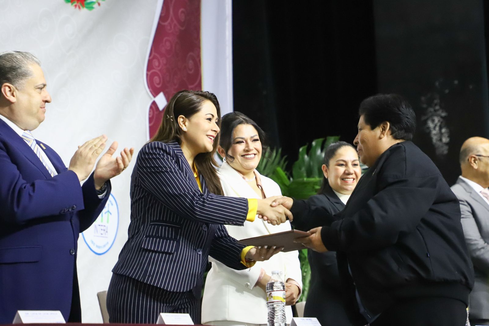 En el marco del festejo, Tere Jiménez entregó reconocimientos a docentes con 20 y 25 años de trayectoria y servicio, por su dedicación y contribución a la educación normalista.