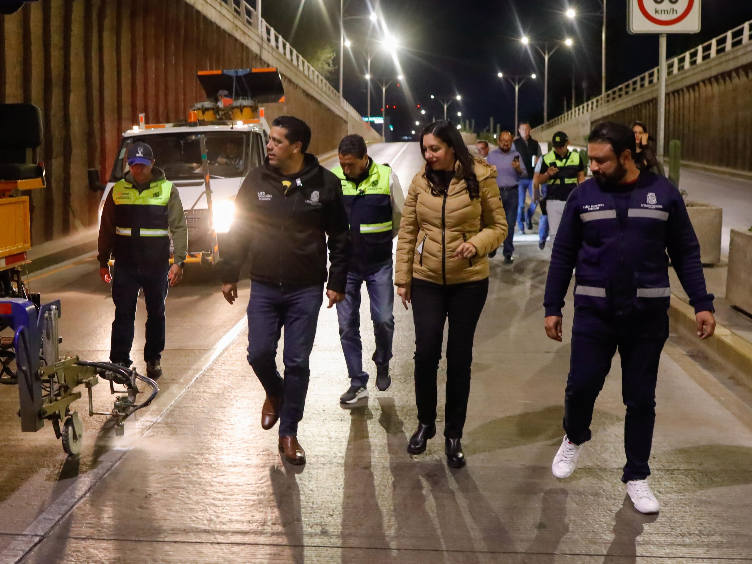 El presidente municipal, Leo Montañez encabezó un operativo de rehabilitación de la pintura vial en el paso a desnivel inferior de avenida Universidad en su cruce con boulevard Luis Donaldo Colosio, para brindar mayor seguridad y prevenir accidentes.