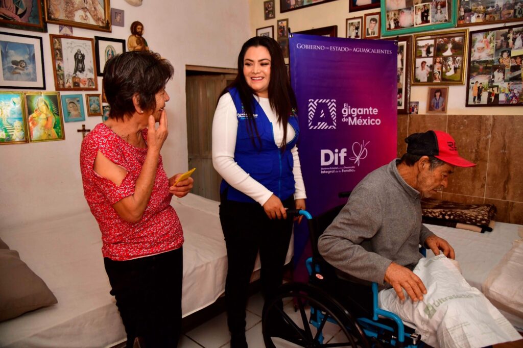 Durante la entrega de sillas de ruedas y otros apoyos a habitantes de los municipios de Rincón de Romos y Aguascalientes, la presidenta del DIF Estatal, Aurora Jiménez Esquivel, destacó que con este tipo de ayuda se busca mejorar la calidad de vida de las personas, especialmente de aquellas que enfrentan alguna discapacidad o que tienen complicaciones en su movilidad.