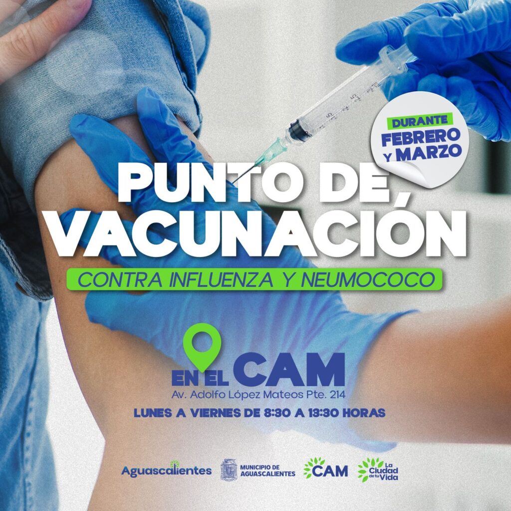 Con el fin de proteger a la población de enfermedades respiratorias y fortalecer la salud pública, se informa a la comunidad que en el Centro de Atención Municipal (CAM), en coordinación con el Instituto Mexicano del Seguro Social (IMSS), se ha habilitado un punto de vacunación donde se estarán aplicando las vacunas contra la Influenza y Neumococo.