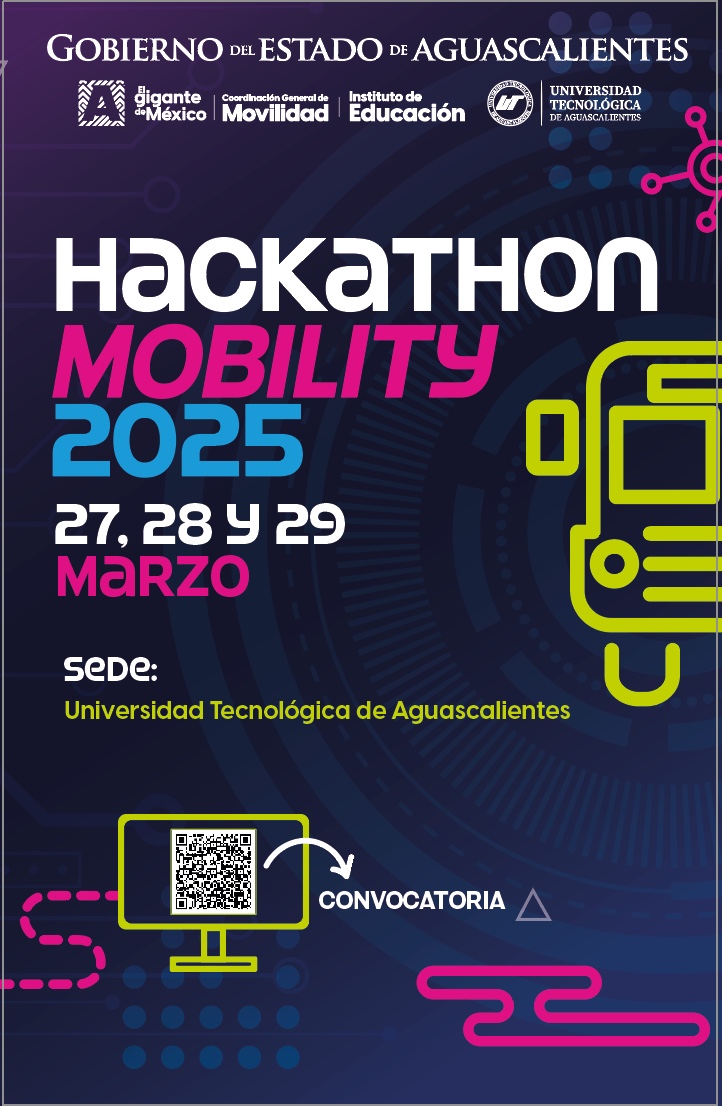 La convocatoria del Hackathon Mobility 2025 está abierta para todos los estudiantes de instituciones de educación superior de Aguascalientes; el evento se llevará a cabo los días 27, 28 y 29 de marzo próximo y tendrá como sede las instalaciones de la Universidad Tecnológica de Aguascalientes.