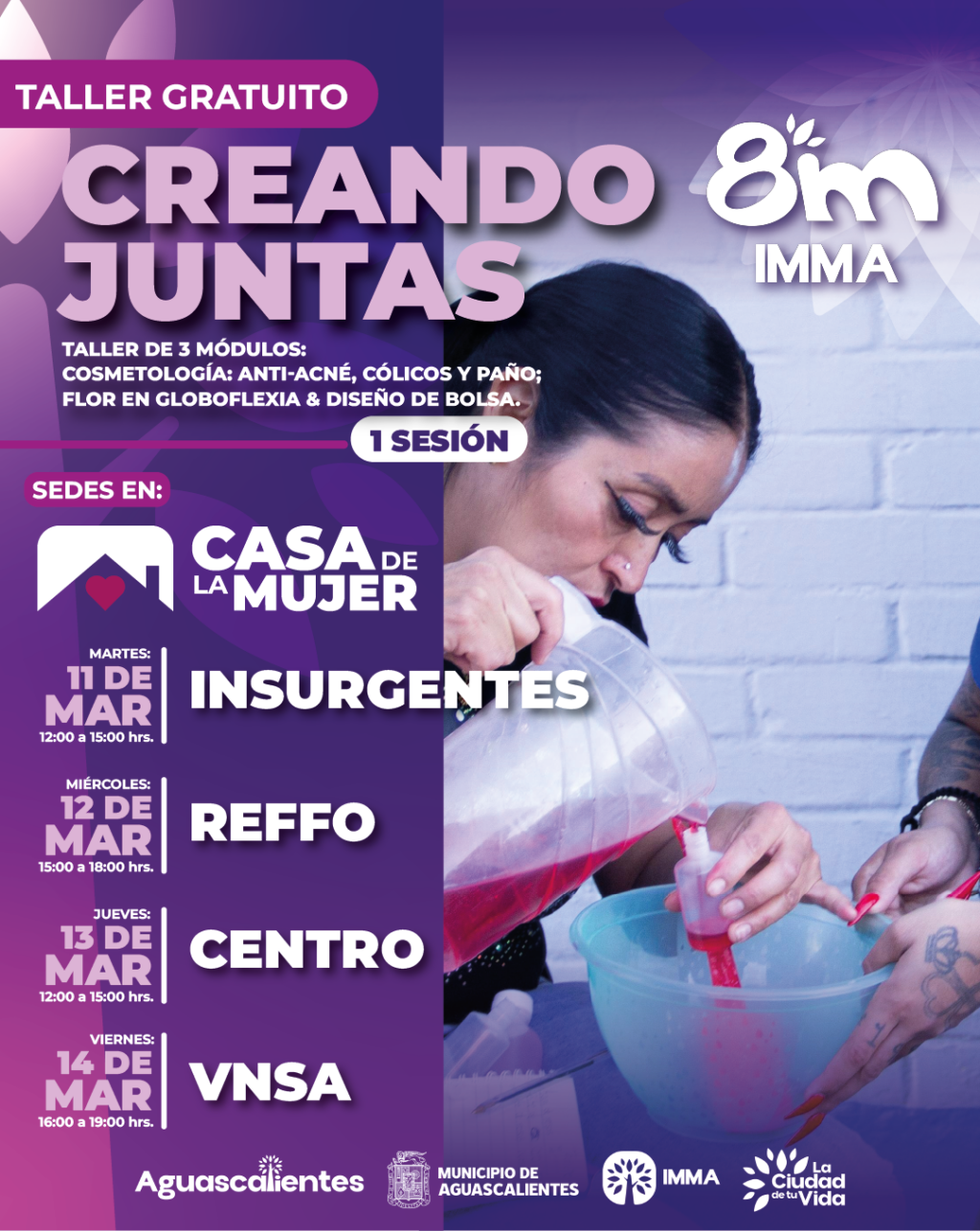 El Municipio de Aguascalientes, a través del Instituto Municipal de la Mujer (IMMA), invita a la ciudadanía a participar en los talleres gratuitos «Creando Juntas», una iniciativa que busca fortalecer la sororidad, el empoderamiento y la expresión creativa de las mujeres en un ambiente seguro.