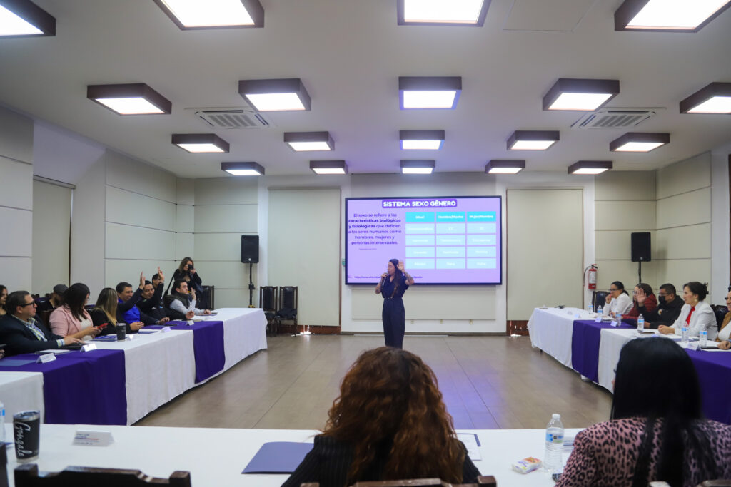 Durante esta jornada, la titular del Instituto Municipal de la Mujer de Aguascalientes, Karla Paola Ávila Rentería, presentó el Programa de Sensibilización y Capacitación en Igualdad Laboral y no Discriminación, diseñado para promover buenas prácticas en los entornos laborales municipales.