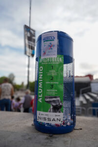 En el perímetro de la Feria Nacional de San Marcos se habilitaron cinco puntos estratégicos para la recolección de residuos, donde los visitantes podrán depositar materiales PET en botes verdes y desechos de aluminio en botes azules.