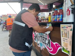 Durante el periodo ferial, personal de la Semadesu visita locales y puntos de venta dentro del perímetro para verificar que cuenten con su constancia de medio ambiente, documento que acredita su compromiso con las prácticas responsables, como el no uso de plásticos de un solo uso y la correcta disposición de sus residuos sólidos urbanos.