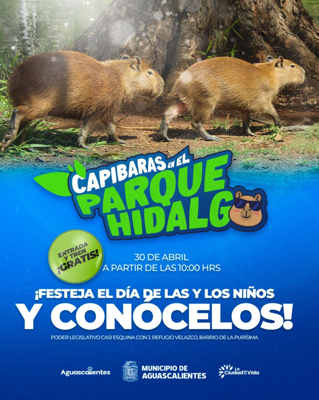 El Municipio de Aguascalientes invita a celebrar el “Día de las y los Niños” en el parque Miguel Hidalgo, en donde chicos y grandes tendrán la oportunidad de conocer a una pareja de capibaras que estarán de visita por tiempo limitado en este emblemático espacio.